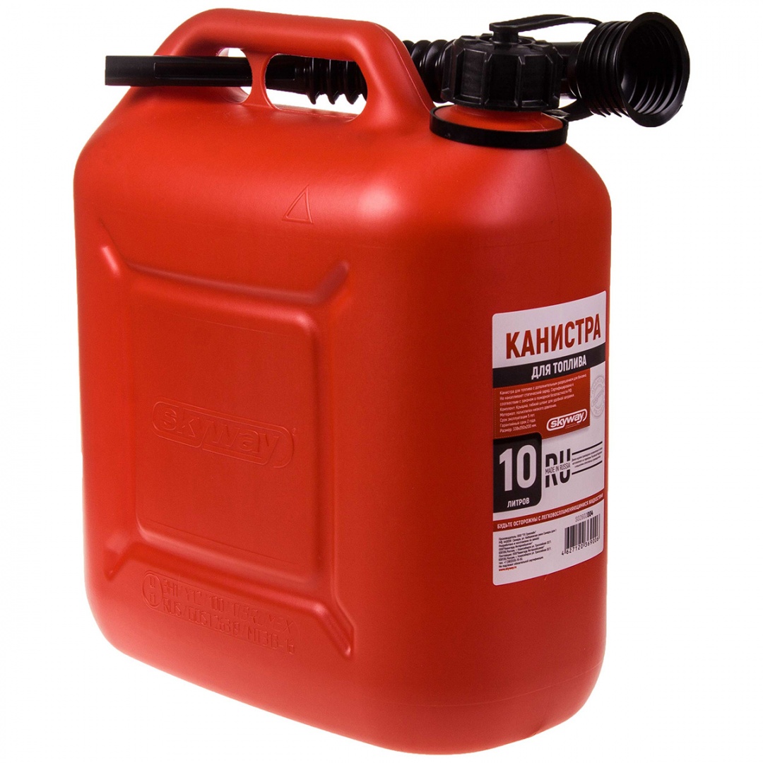 Канистра для бензина 10л пластик усиленная - канистра для топлива с дополнительным разрешением для бензина. Не накапливает статический заряд.