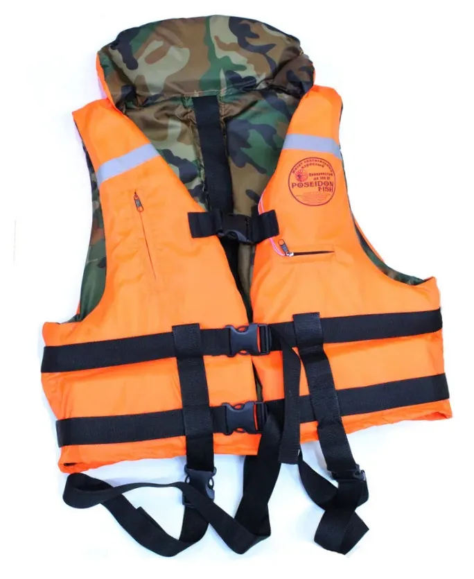 Двухсторонний спасательный жилет. Основное назначение спасательного жилета: поддержка человека даже в бессознательном состоянии на поверхности воды "Лицом вверх", что полностью исключает вероятность захлебнуться в воде. Используется не только в личных целях, но и для различных тренировок и соревнований на воде, в туристических походах.