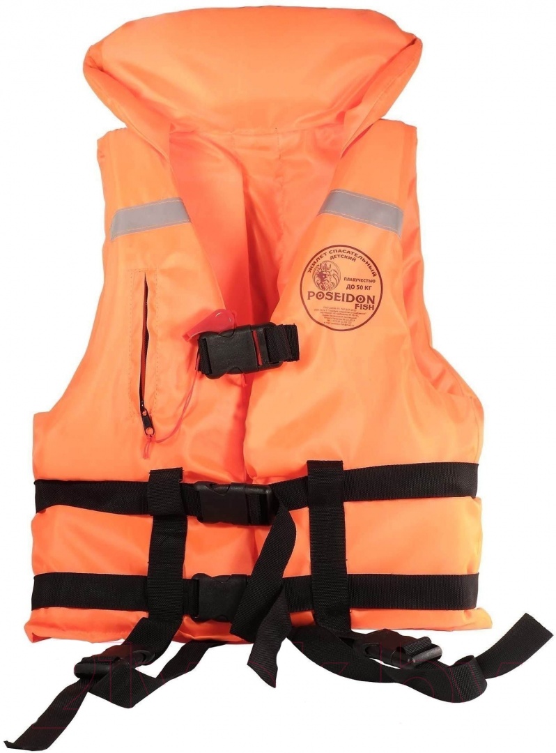 На фастексах расположены ремни, регулирующие объем жилета и надежно фиксирует его на теле. Длина подстраивается за счет пахового ремня, размещенного снизу. Жилет оснащен высоким подголовником, который держит голову на плаву, он достаточно гибкий для удобства транспортировки. Имеются светоотражающие ленты для привлечения внимания. На груди справа - карман на молнии со свистком на шнурке.