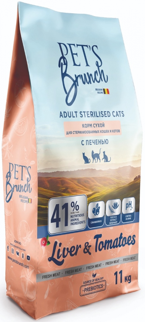 Аналитический состав: белок 30 %, жир 11 %, клетчатка 4,6 %, зола 6,8 %, кальций 1,1 %, фосфор 0,6 %, натрий 0,7 %, калий 0,5 %, Омега-6/Омега-3 не более 5,0 ед., таурин 0,2 %, метионин 0,1 %, триптофан 0,1 %, аргинин 0,4 %, лизин 1,2 %.